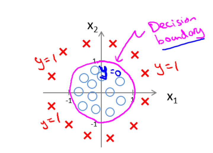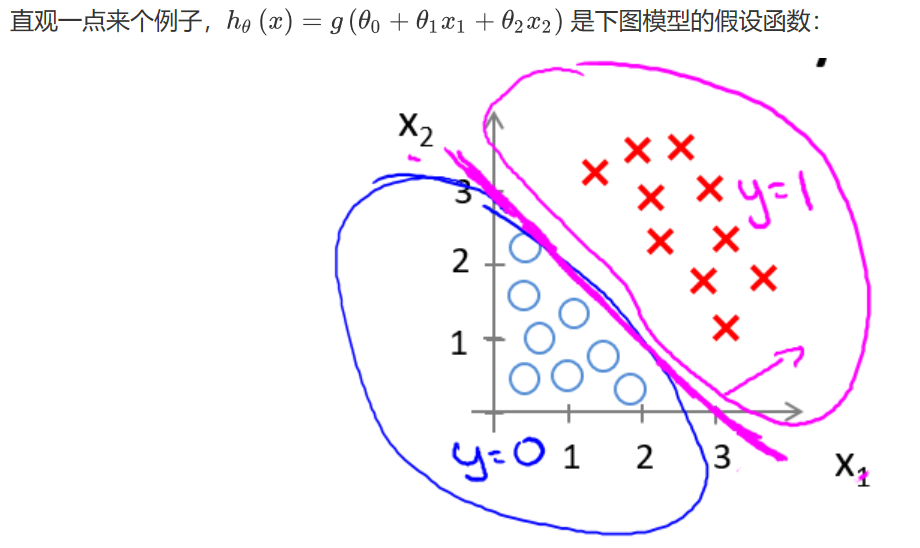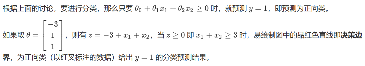 的方程等于零,就可以计算得到决策边界。但是要注意边界的哪个方向得到y=1,哪个方向又是y=0,不要弄混。