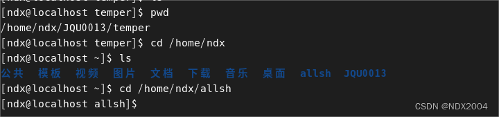 打开子目录(文件):cd+空格+子目录名(文件名)