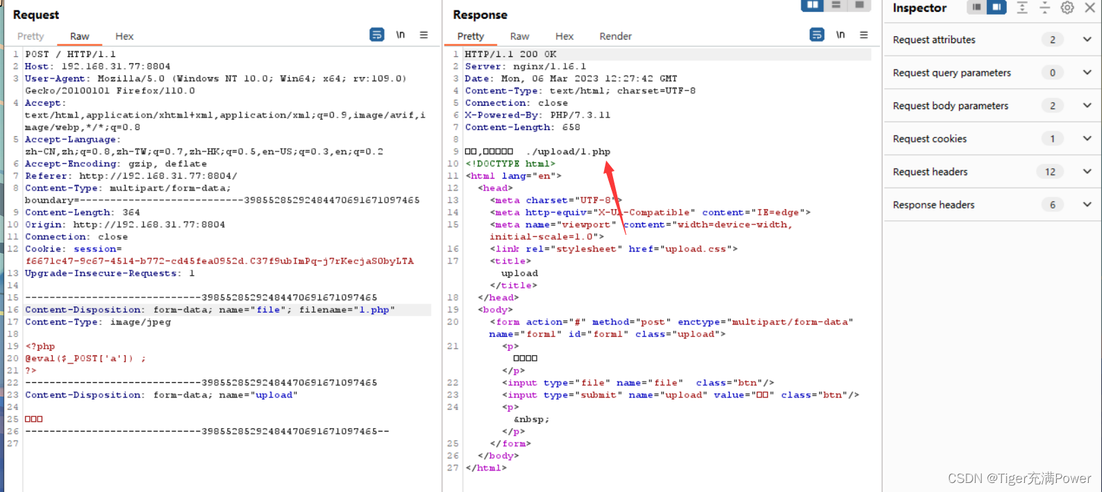 用bp抓包,把jpg改成php,这样一句话木马才能工作:
