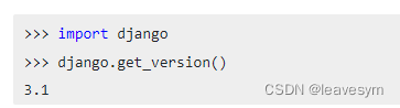 进入Python交互式环境(注意一定要进入刚刚安装了Django的Python解释器),按下面所示查看安装版本: