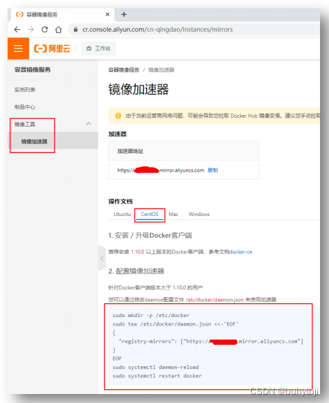 下面就需要按照给出的步骤来完成镜像加速器的配置了。