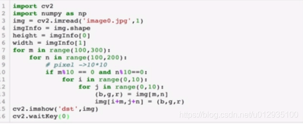 这里是选择200x100的感兴趣区域,小矩形框选取10x10的模糊马赛克操作,代表这100个像素点的值和某个值一样。