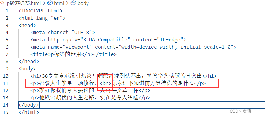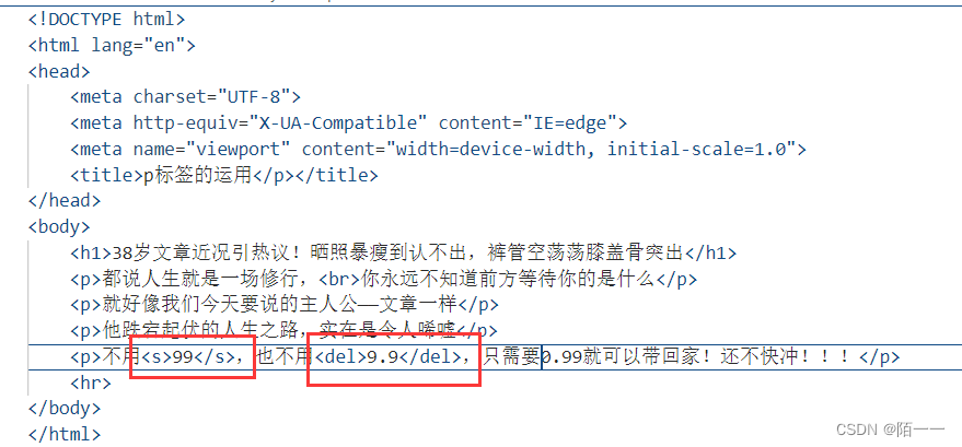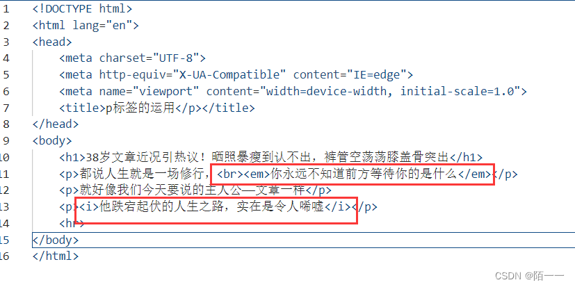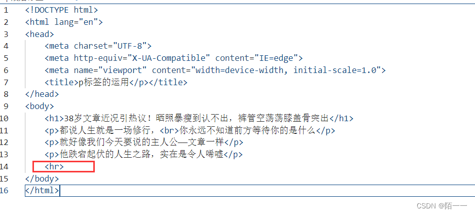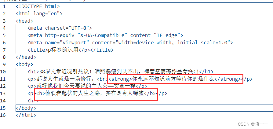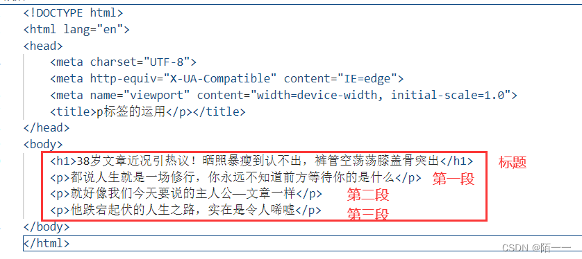 :段落标签,每一个p标签下面一个段落代码演示: