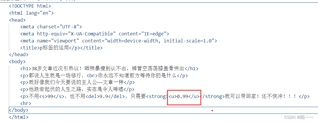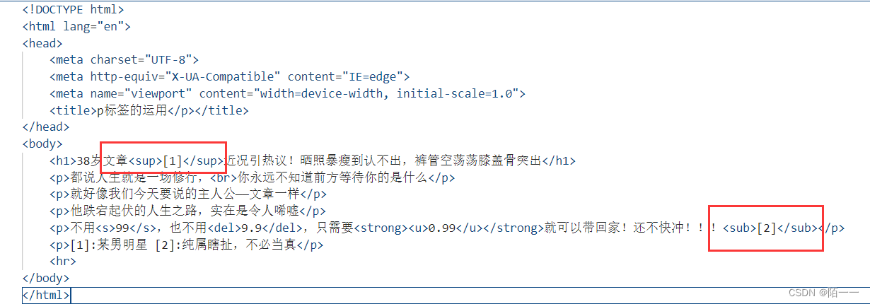 常见的html标签:<h1>/<p>/<br>/<hr/>/<b>/<strong>/<i>/<em>/<s>/<del>/<u>/<sup>/<sub></sub>