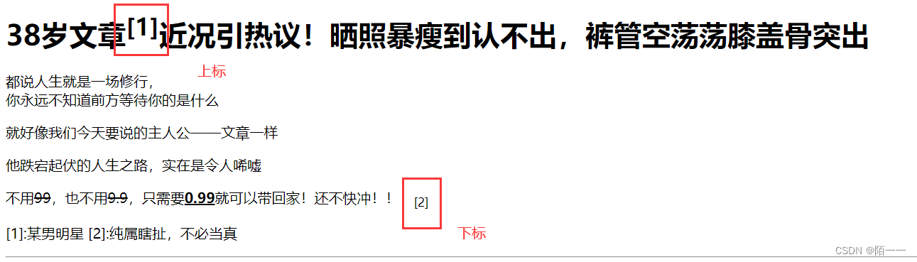 上标和下标标签就像是书里的某个名词的解释一样,