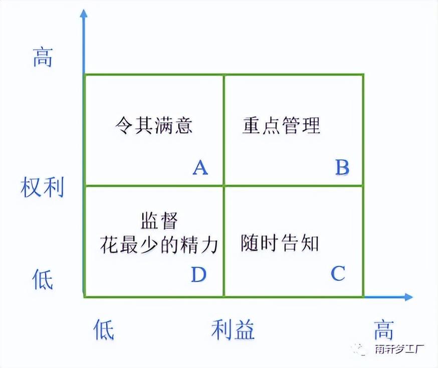 横轴是利益,竖轴是权利,口诀:亨利全输