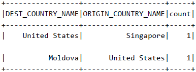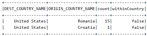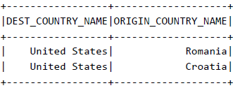 GROUP BY dest_country_name ORDER BY sum(count) DESC LIMIT 5+-----------------+