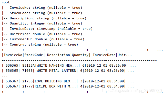 DataFrame有很多列,而模式(schema)定义了这些列的名字和数据类型。可以用下面的方法查询DataFrame的模式: