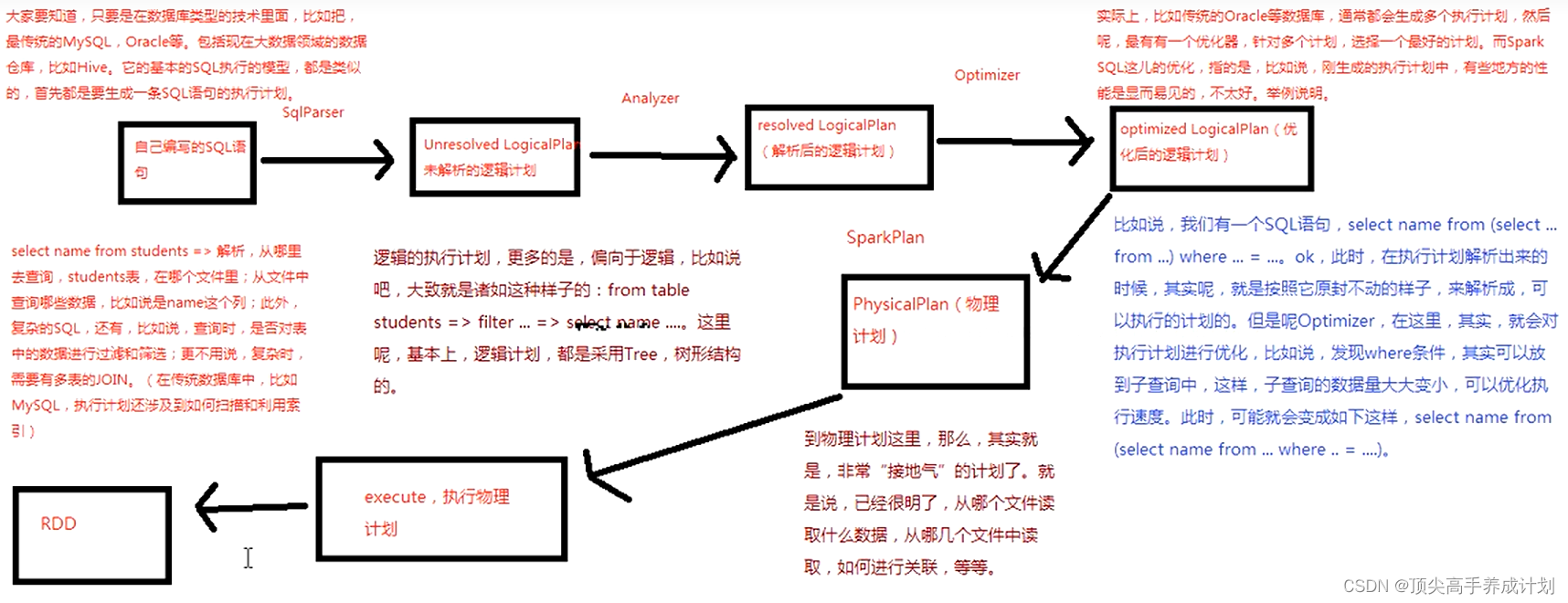 DataFrame 内部的有明确 Scheme 结构,即列名、列字段类型都是已知的,这带来的好处是可以减少数据读取以及更好地优化执行计划,从而保证查询效率。