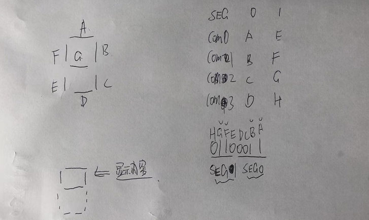 SEG0上的LCD连接是ABCD四个段码,SEG1上是内容是EFGH四个段码,公共电极COM,C0连接AE这两个段码,C1连接BF,C2连接CG,C3连接DH,按照此逻辑输入“01100011”,高4位对应SEG1,低电位对应SEG0,将同时显示FGAB四个段码,输入的显示数据不重新输入的话会一直显示,要同时显示2位数字和段码,只要将这些数字和段码在在逻辑表上对应的数据配置1即可同时显示。