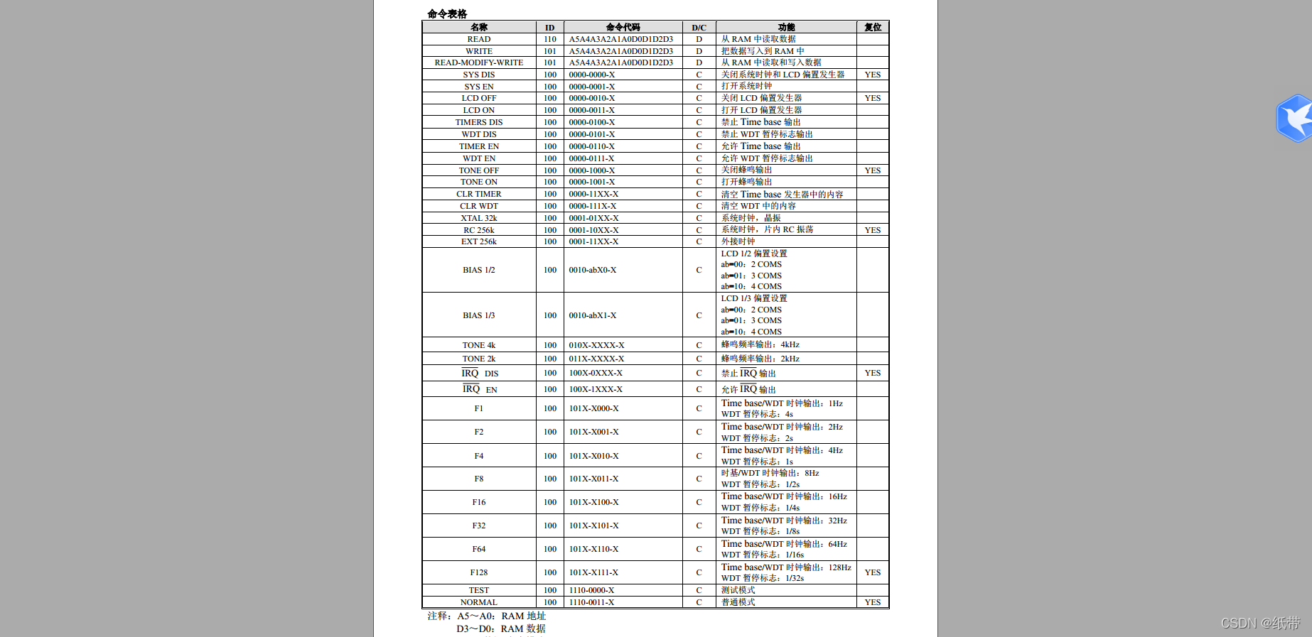2.HT1621B,其中的D0~D3,A0~A5各代表什么意思?