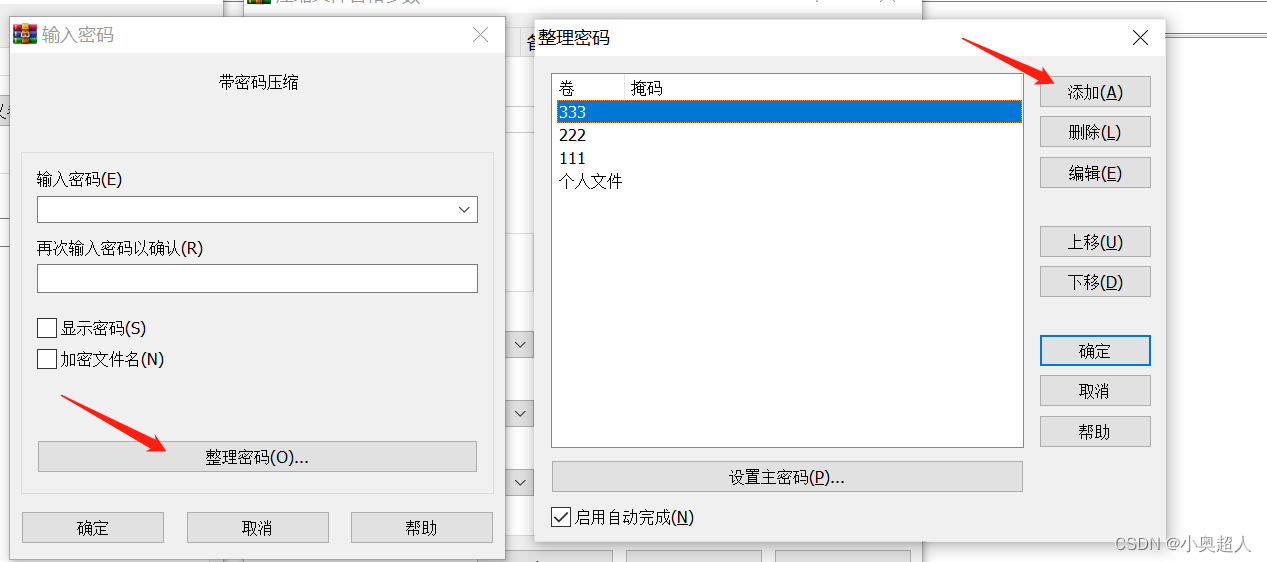 如果你需要对很多压缩包进行加密,但是密码不相同,那就无法使用自动加密了,不过我们可以考虑将密码全部放到整理密码当中,每加密一个压缩包时选择想要的密码就可以了,方法如下: