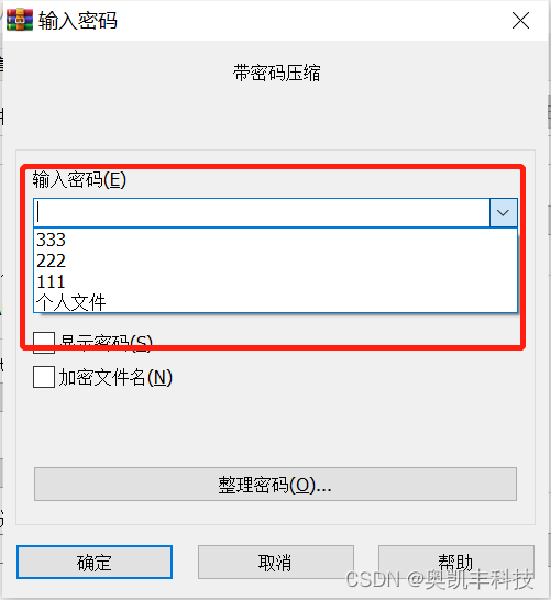 设置完成之后,我们按照第一种加密方法对文件进行加密的时候,点击密码输入框的下拉按钮就可以看到我们之前设置的密码,选择想要加密的密码即可完成加密
