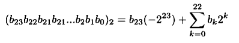首先我们要搞清楚计算机中数字的二进制存储形式。对于一个24位数,其计算关系可用下面的公式表达: