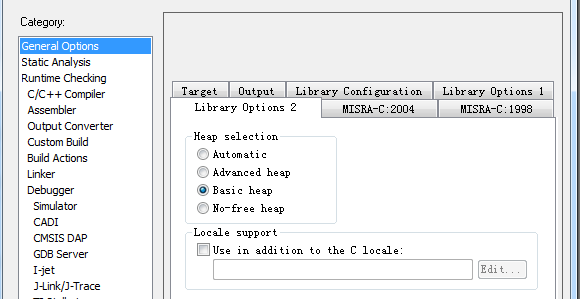 Basic heap: 基本堆(--basic_heap)是一个简单的堆分配器,适用于不经常使用堆的应用程序。特别是,它可以用于仅分配堆内存而从不释放堆内存的应用程序中。基本堆并不是特别快,并且在反复释放内存的应用程序中使用它很可能导致不必要的堆碎片化。基本堆的代码远小于高级堆的大小。