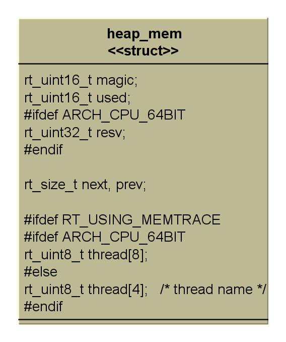 #ifdef RT_MEM_STATSused_mem += mem->next - ((rt_uint8_t *)mem - heap_ptr);if (max_mem < used_mem)max_mem = used_mem;