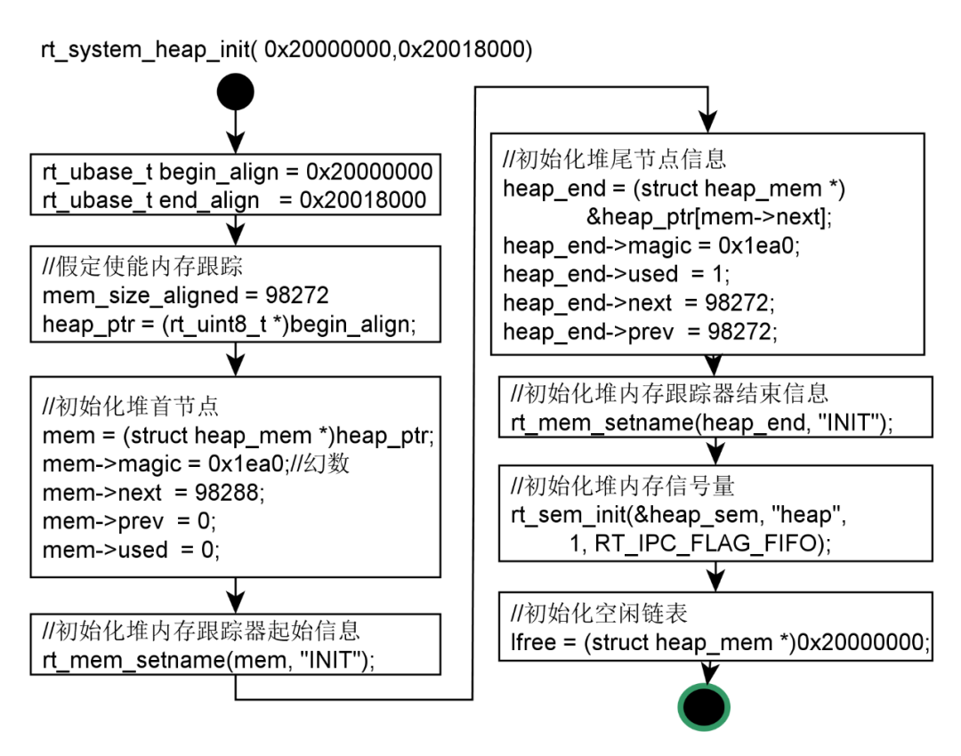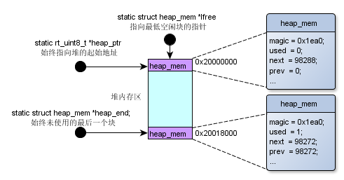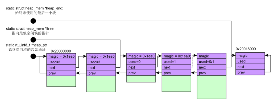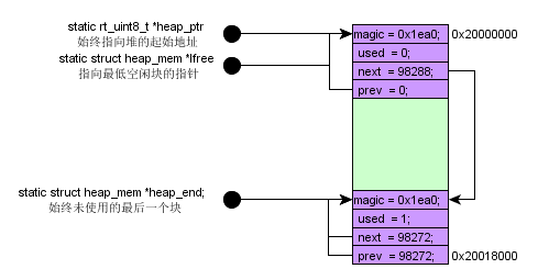 上述rt_system_heap_init( 0x20000000,0x20018000),主要做了下图这么一件事情。