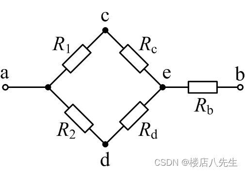 时,很容易通过图2证明,ce和de两个支路的电压降相等,所以,图1中,对角线支路