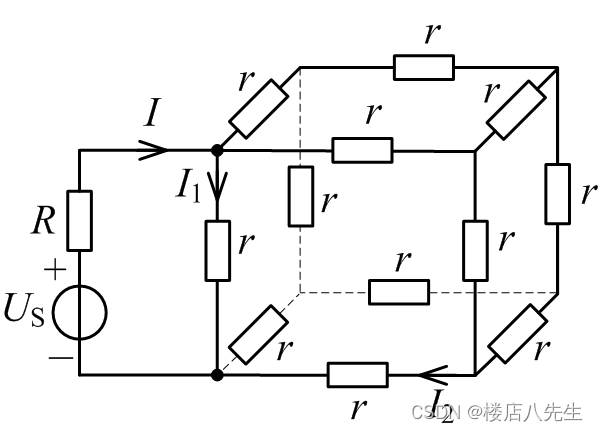 类似于平衡电桥,具有对称性的特殊复杂网络,可利用其对称性寻找等电位点,进而通过短接等电位点或断开所连接支路,简化电路分析和变量计算。