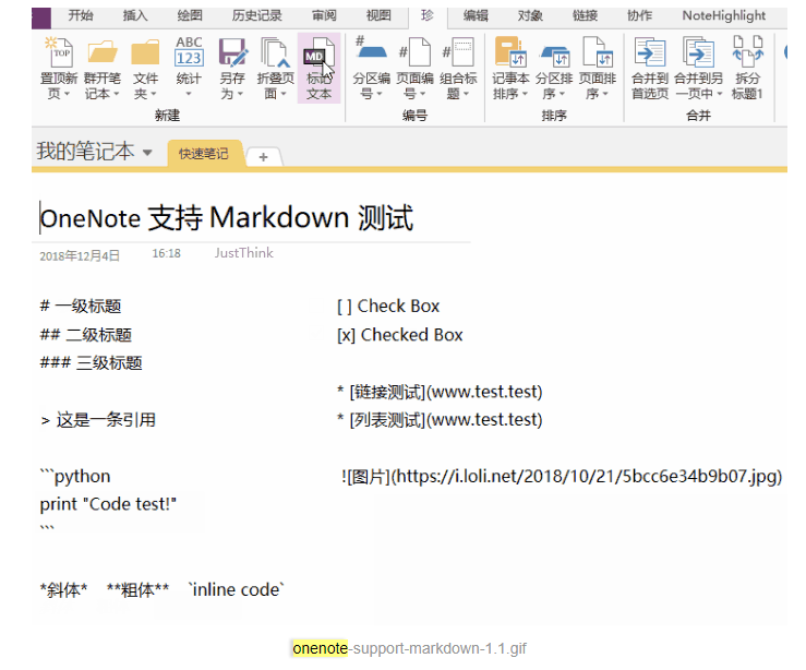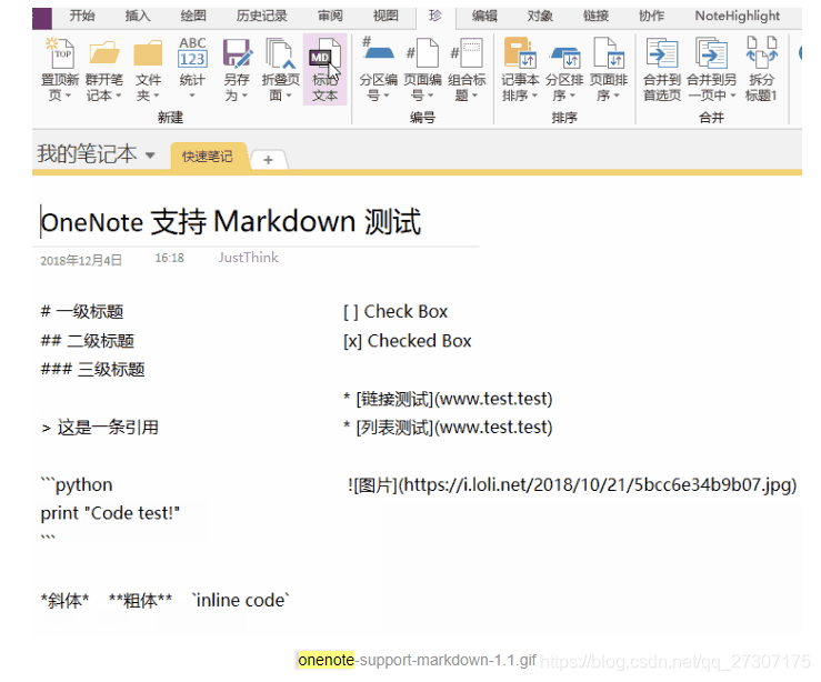 我在之前已经介绍过了 OneNote 如何支持代码高亮技巧:(https://blog.csdn.net/qq_27307175/article/details/93475000),这次就分享下如何让 OneNote 支持 Markdown 语法的方法。