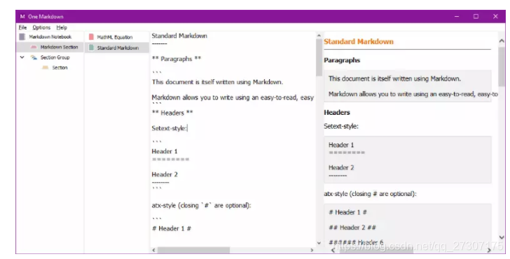 该工具相当于一个辅助编辑器,支持 Windows、安卓和 iOS,在工具中编辑 Markdown 后,将渲染后的文本同步至 OneNote 中。