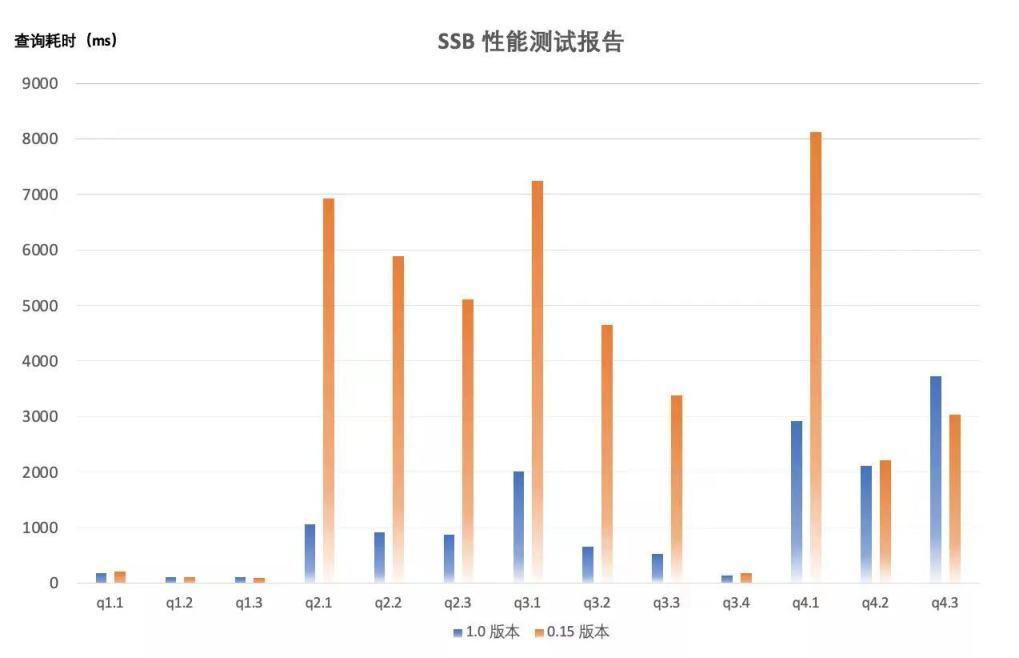 在 Apache Doris 1.0 版本中,通过 set batch_size = 4096 和 set enable_vectorized_engine = true 开启向量化执行引擎,多数情况下可显著提升查询性能。在 SSB 和 OnTime 标准测试数据集下,多表关联和宽列查询两大场景的整体性能分别有 3 倍和 2.6 倍的提升。
