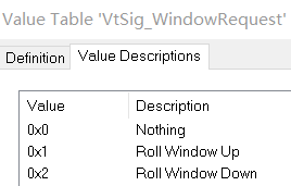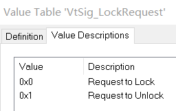 双击“Signals”下的“LockRequest”。在出现的窗口中,在value tables的下拉框中选择“VtSig_LockRequest”。单击[OK]。
