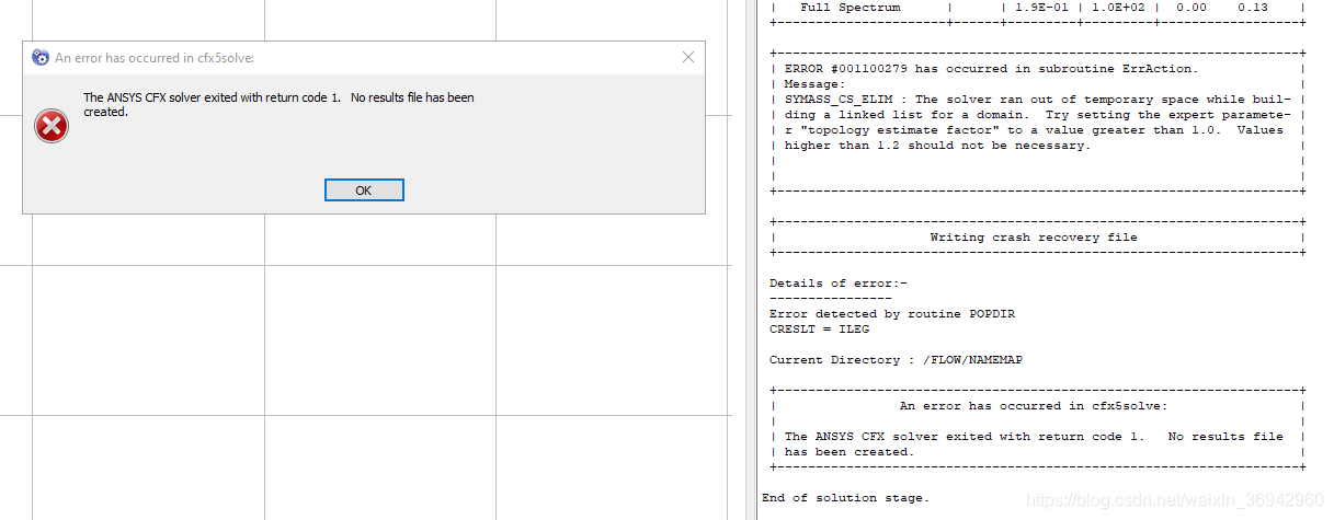 CFX 报错:The solver ran out of temporary space while building a linked list for a domain interface