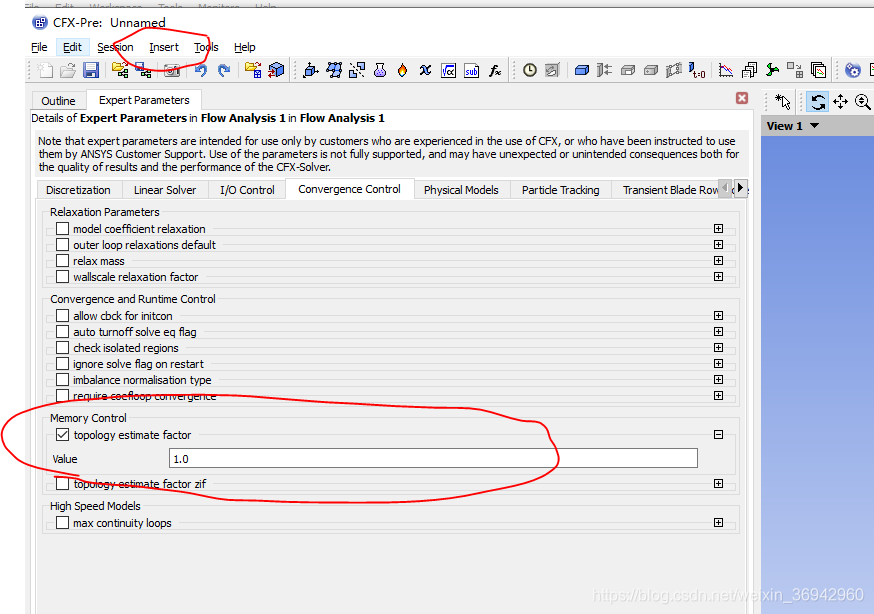 pre前处理里面:Insert->solver->expert parameter->Convergence Control-> Memory Control下面的topology estimate factor 和/或 topology estimate factor zif 的因子由1适当调高,如1.2,表示分配空间提高20%。在计算网格量巨大的时候,还可再适当提高。