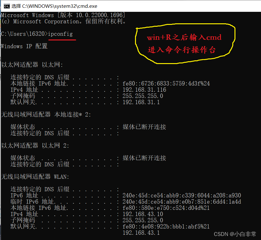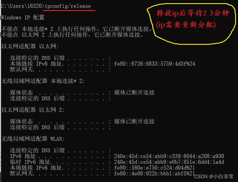 电脑成功连接了手机热点或者WIFI但却无法上网, 利用命令行ipconfig重新分配ip地址解决成功(win11/win10都可以解决)