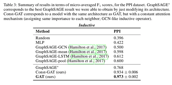 作者将注意力机制和图卷积相结合,已达到对节点分类的任务取得更好的效果。我认为他这么做的依据主要有两点:一是图结构,图网络的图结构是需要提供信息的,这也是图网络能产生好的效果的原因,但是越稠密的图,蕴含的信息是越少的,极端的情况就是全连接图,就是将所有的节点都连接起来,这样的图的结构基本没有提供任何有用的结构信息,所以,越稀疏的图往往能提供越多的信息,但是当人没法先验的决定图中的两个点是否连接的时候,我们还是希望能得到一个稀疏图,这时候,我们就可以让节点自己学习是否和它现有的临边相连,从而产生一个稀疏图,我个人认为注意力机制能产生效果有一部分是这样来的;二是注意力机制实属万金油,基本放到哪儿都能有一点效果。作者说GAT有三个不错的特点:(1)高效,节点对的计算是并行的(a是由节点对计算得到);(2)它可以作用于拥有不同入度的节点(作用对象是节点对,当然接受可变入度);(3)模型能够直接适用于归纳学习问题。(本段总结来自组里代码扛把子阿彤)