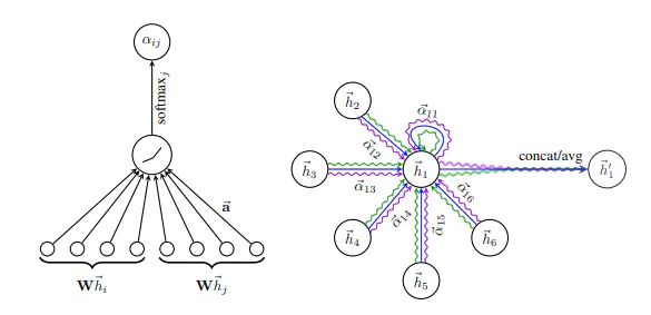 。以此来计算中心节点与其邻居节点的注意力系数: