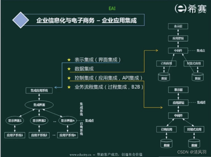 EAI主要包括两方面:企业内部应用集成和企业间应用集成。