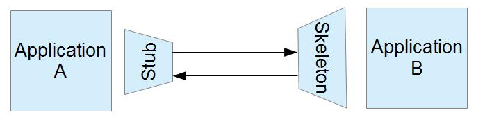 以典型的java RMI为例,当我们需要访问远程方法的时候,需要定义访问的接口,然后通过相关工具生成skeleton和stub。然后一端通过stub给另外一端发送消息。在应用A本地的代码中访问stub看起来还是和调用本地方法一样,这些细节都由stub给屏蔽了。其他的技术如COM, CORBA, .net Remoting都采用了RPC的思路。
