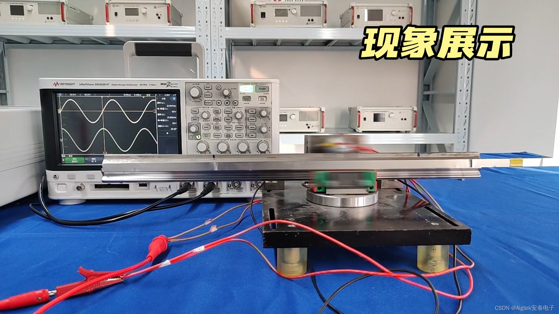 此时我们就可以看到功率放大器已经成功将超声电机驱动起来了,我们可以看到导轨已经在做横向运动。