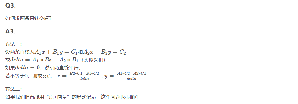 {node u=p-q;double t=Cross(w,u)/Cross(v,w);return p+v*t;