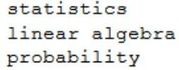sample = ['statistics', 'linear algebra', 'probability'] # iterator