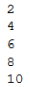 class Sequence(): def __init__(self): self.num = 2 def __iter__(self): return self def __next__(self): val = self.num if val>=10: raise StopIteration self.num += 2 return val