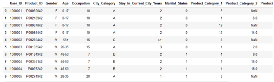 df = pd.read_csv('./Black Friday.csv', chunksize=10) # print first chunk of data