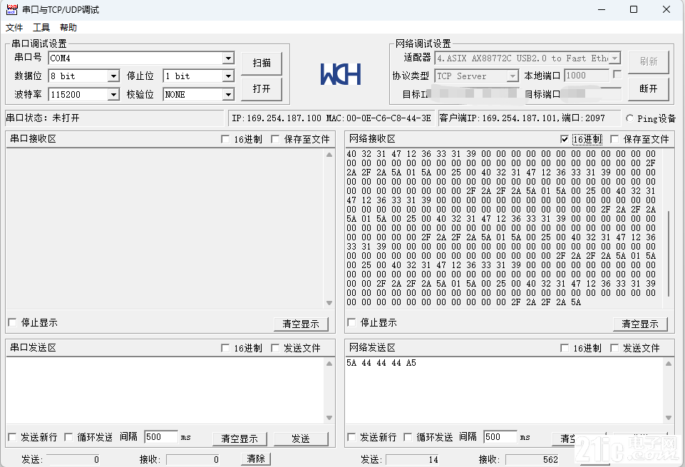 至此,CH9121配置完成,后续就是进行通讯测试。