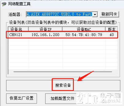 找不到CH9121?原因可能是没有设置为同一个网段,设置为同一个网段即可。