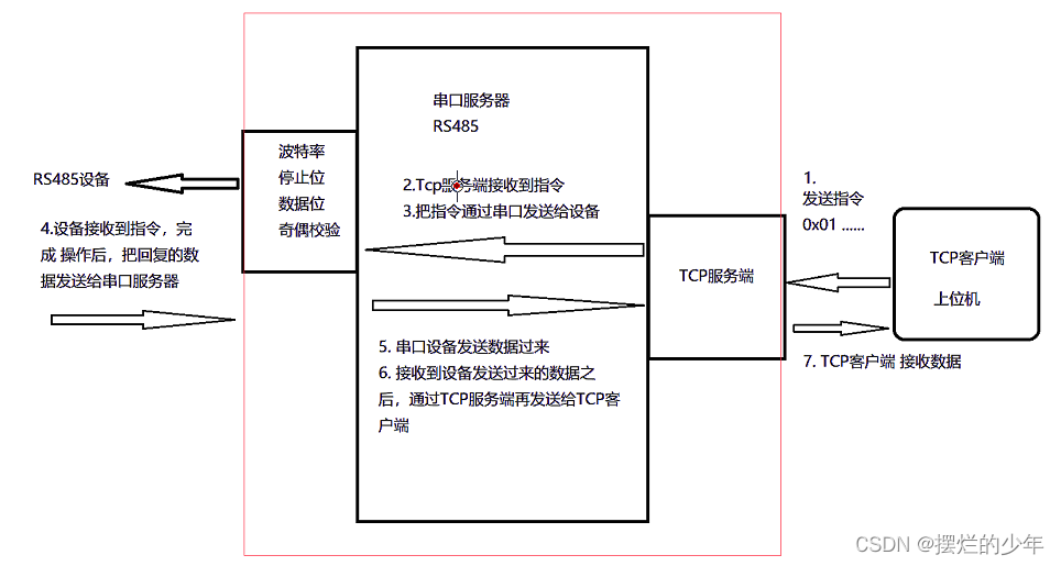 三、发生数据:TCP服务端 <安装的测试软件> --- TCP客户端 <代码编写> --- 串口。(返回数据:串口 --- 客户端 --- 服务端)。