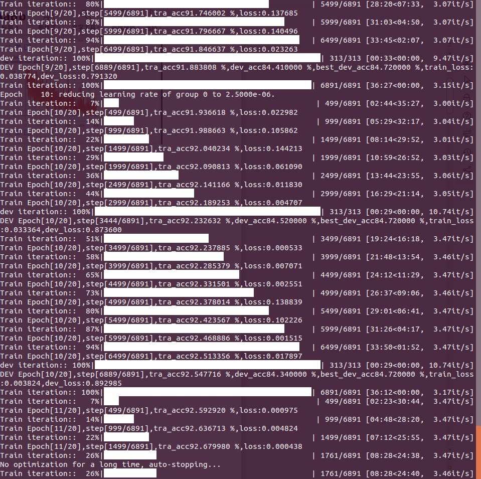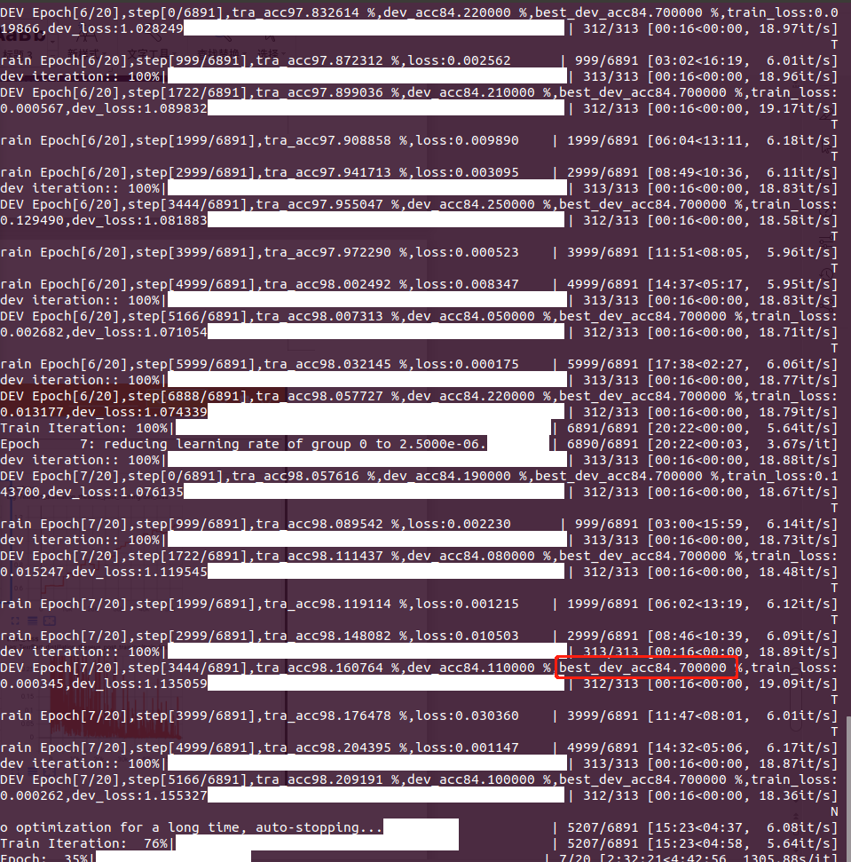train_data = ReadDataSet('train.tsv',args)train_loader = DataLoader(dataset=train_data, batch_size=args.batch_size, shuffle=True)dev_data = ReadDataSet('dev.tsv',args)dev_loader = DataLoader(dataset=dev_data, batch_size=args.batch_size, shuffle=True)teacher_model = torch.load('savedmodel/TextBert_model.bin')student_model = TextRNN()train(teacher_model,student_model,train_loader,dev_loader,args)