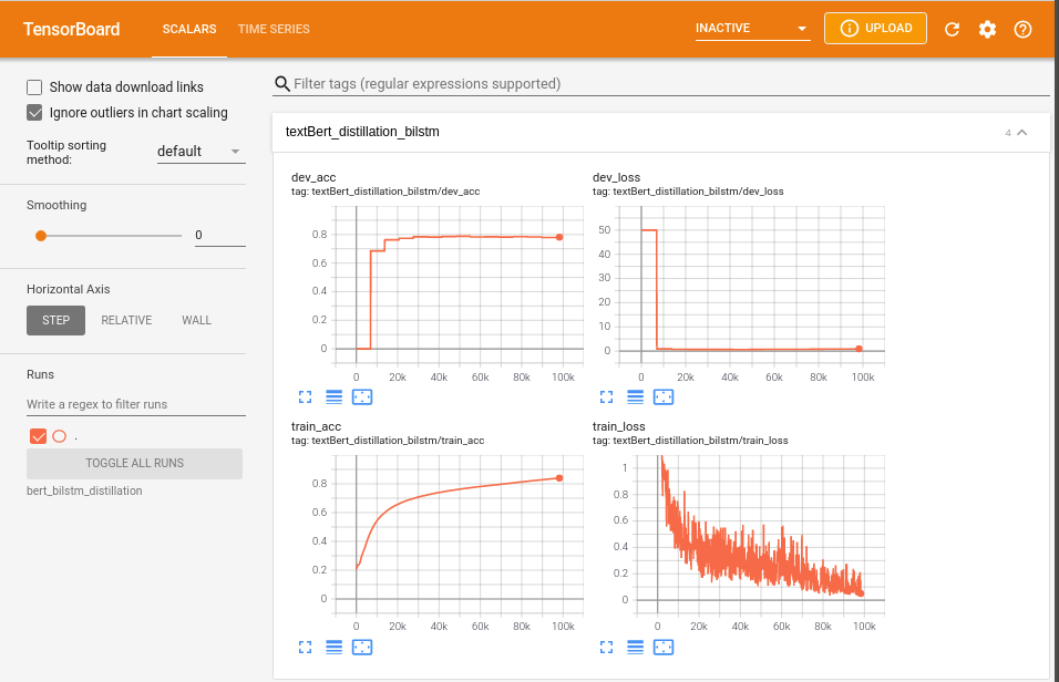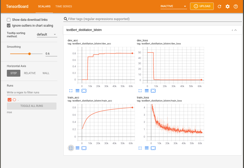 Roberta蒸馏到BiLstm+KLDivLoss:78.78%——相比Bilstm上升4个点,相对roberta下降了6个点