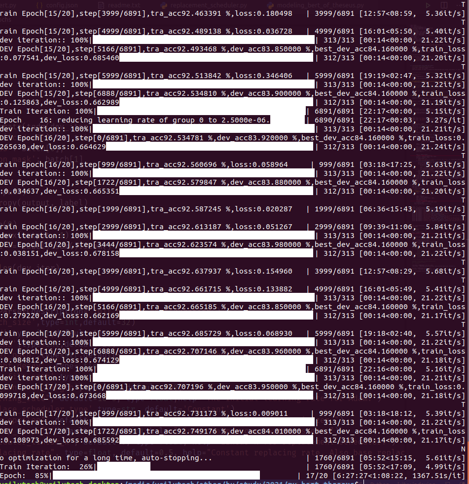 Bert_of_theseus+第一阶段:84.16%,下降了0.56%