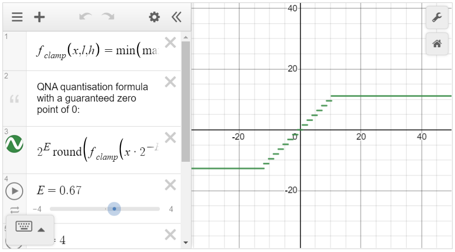 对于可微量化,我们可以使用任何具有可微位深度参数的函数,该参数将一个或多个浮点值映射为硬件可表示的压缩数字格式。例如,我们可以使用 Google Q8A 量化的可变位深度版本(其中可表示范围不是以零为中心):