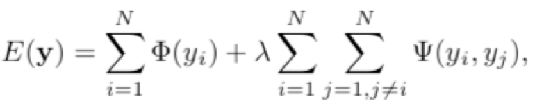 上面公式前后两部分分别代表选择的神经元i的一元势函数和神经元i、j的二元势函数,