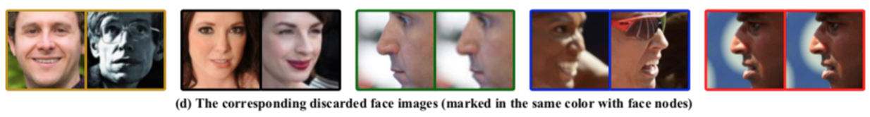 这些噪声样本中有遮挡,侧脸,光线等问题,教师网络学习的并不好,所以这些样本需要被舍弃掉,所以本文的方法在找到有代表性的人脸的同时还会舍弃掉一些不好的训练样本,避免教师网络对学生网络产生误导。