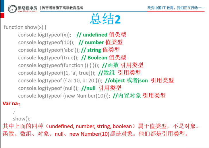 window.onload = function () {function test() {// 变量提升(未定义先使用 会自动相当于 在前面定义了未赋值而已)console.log(gkk);//undefinedvar gkk = 'hello';console.log(gkk);//helloconsole.log(foo);//ƒ foo() { return 'Hello';}console.log(goo);//undefined//函数表达式,仅变量goo被提升到顶部,实现没有提升var goo = function () {return 'world';}//函数声明,变量foo及其实现被提升到顶部function foo() {return 'Hello';}bar = function () {console.log('world');}return function bar() {console.log('This is a test function!');}}//test();var testfun = test();testfun();//This is a test function!console.log(testfun);//function bar() { console.log('This is a test function!');}bar();//world}