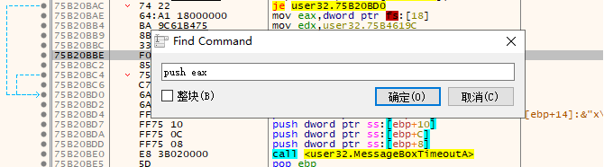 虽然无法搜索连续的汇编指令集,但却可是搜寻二进制字符串,通过快捷键Ctrl+B读者可打开二进制搜索框,我们以如下这条命令为例;